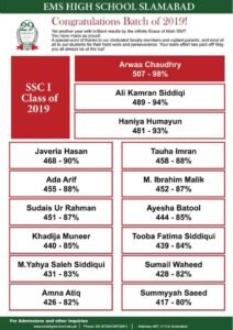 The Senior Section of EMS High School support Grade 8, and both Matric and IGCSE. All classes for either stream are segregated for boys and girls. We are affiliated to the Federal Board of Intermediate and secondary education as well as the Edexcel London Board. After a child completes grade 8 they choose either of the streams with their teachers recommendations. Since all education till grade 8 is the same for both streams, either of the choices are possible for all children.
